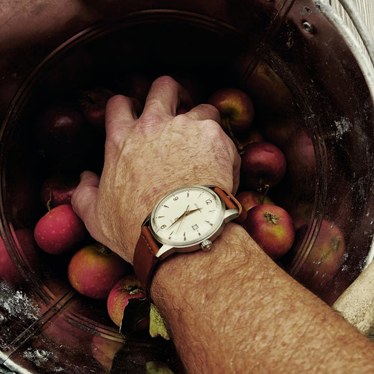 Straps are available in brushed stainless steel or in vegetable-tanned leather from Sweden’s renowned Tärnsjö Tannery. The leather ages beautifully, developing a rich patina over time.