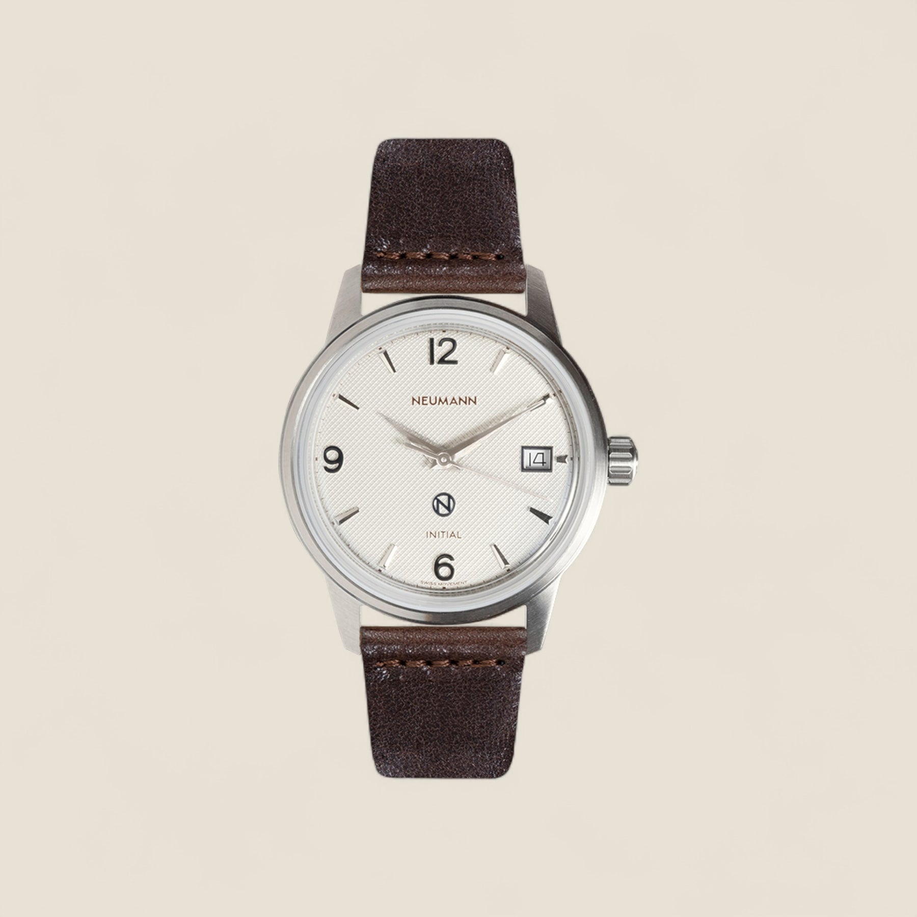 A balanced expression of proportion and clarity, the INITIAL Nº 1 in 36 mm offers a quietly confident presence on the wrist. Its compact size and domed sapphire crystal evoke a mid-century elegance, reinterpreted through a contemporary lens. Designed in Sweden and assembled in Germany, each timepiece reflects Neumann’s dedication to simplicity, precision, and timeless wearability.