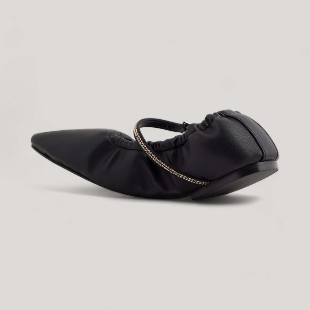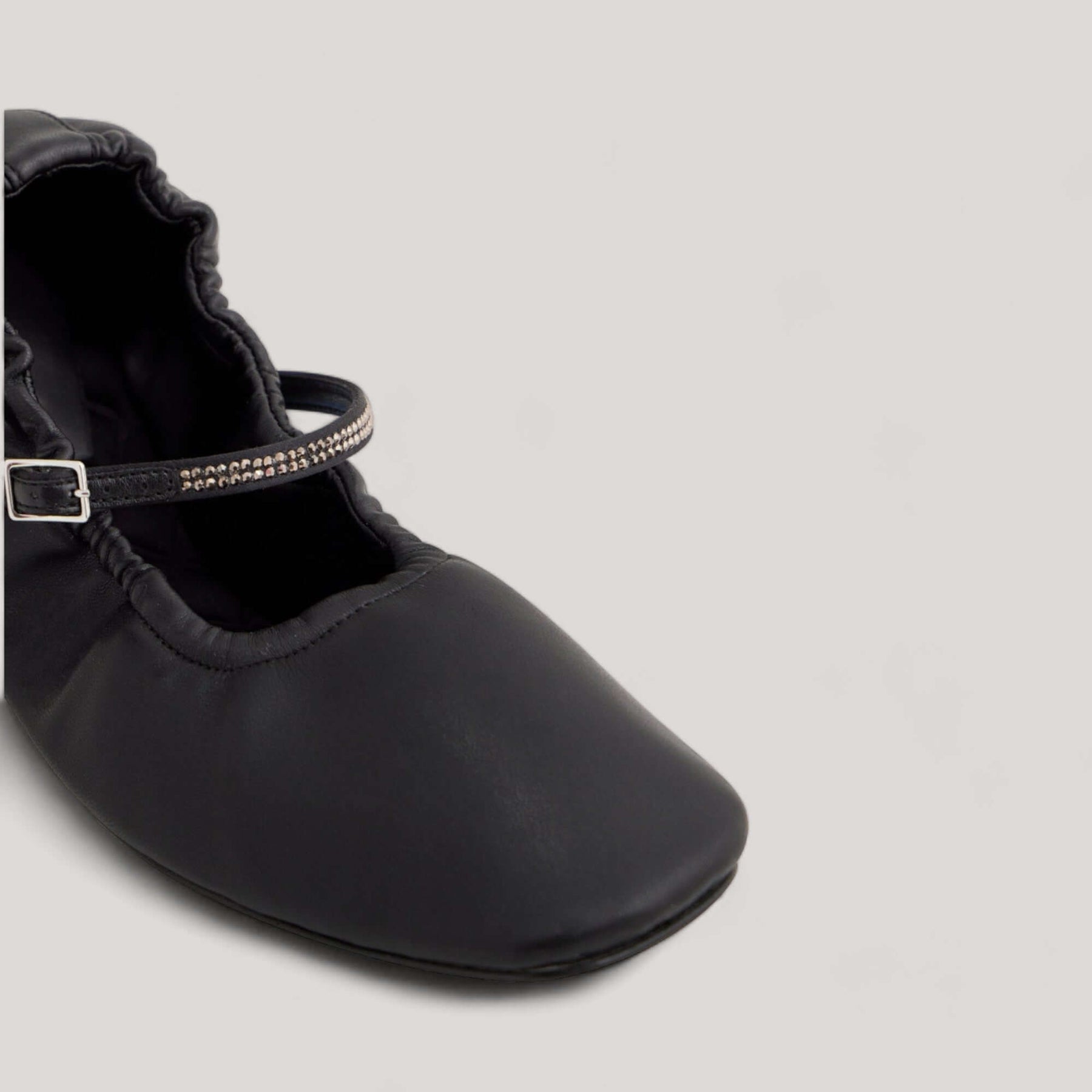 Black Nappa Crystal Mary Jane Flats with crystal-embellished strap and cushioned insole by AERA. Vegan and sustainable ballerina shoes.