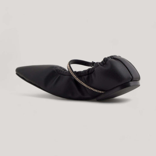 Side view of AERA Aurora Black Nappa Crystal Mary Jane Flats, vegan and sustainable, handcrafted in Italy with a crystal-embellished strap.