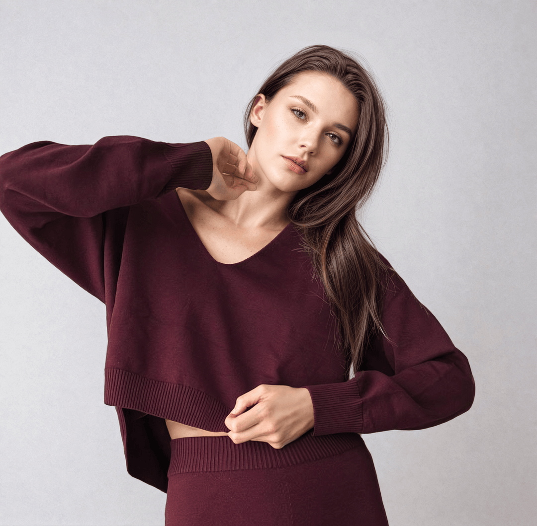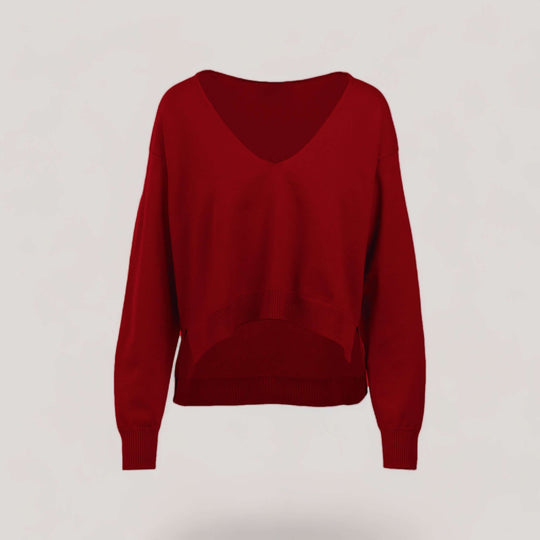 CARMEN | Boxy Cropped V-Neck Sweater | COLOR: CRIMSON |3D Knitted by ALLTRUEIST