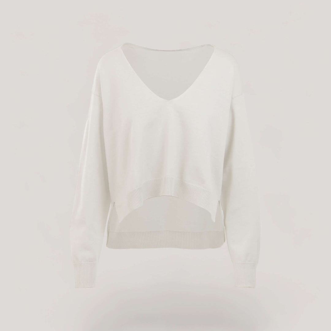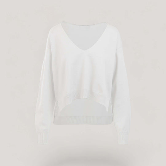 CARMEN | Boxy Cropped V-Neck Sweater | COLOR: WHITE |3D Knitted by ALLTRUEIST