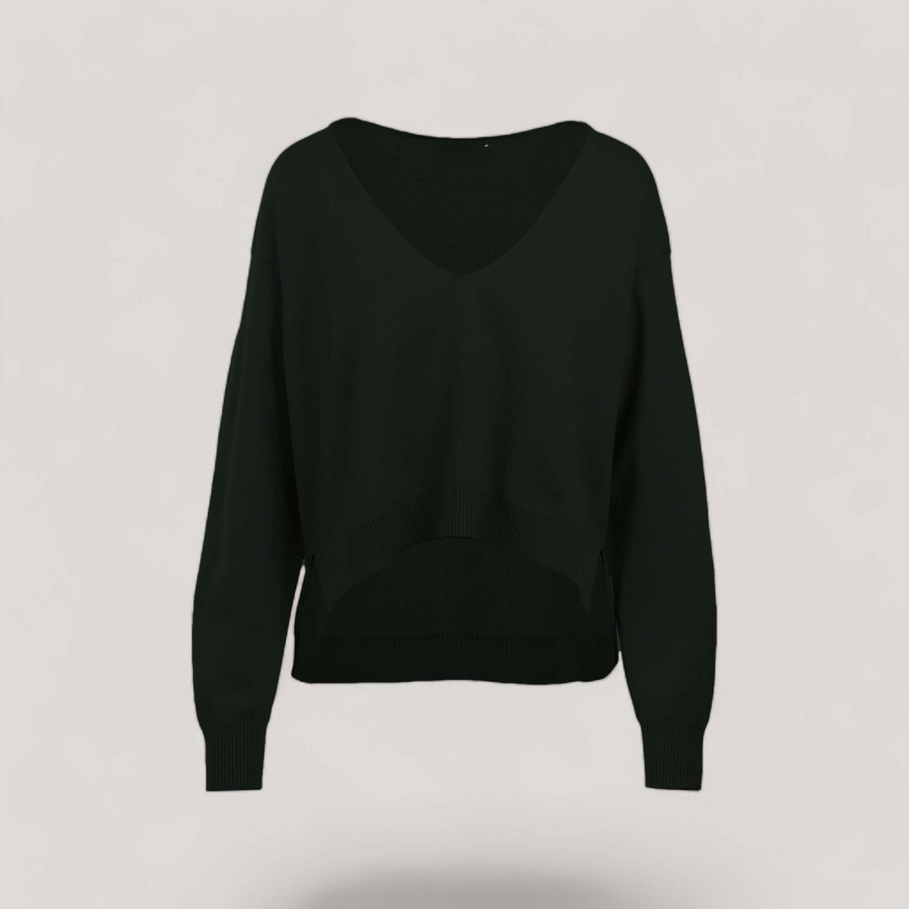 CARMEN | Boxy Cropped V-Neck Sweater | COLOR: LODEN (Dark Green) |3D Knitted by ALLTRUEIST