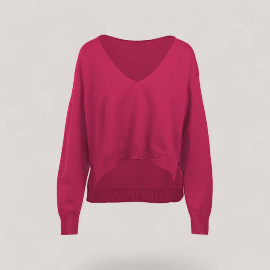 CARMEN | Boxy Cropped V-Neck Sweater | COLOR: MAGENTA |3D Knitted by ALLTRUEIST