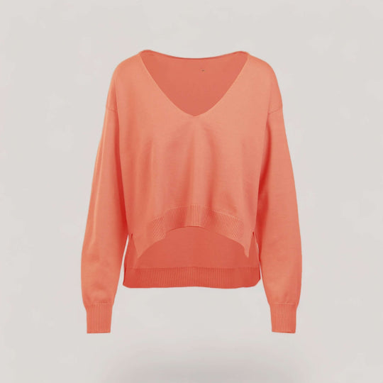 CARMEN | Boxy Cropped V-Neck Sweater | COLOR: PEACH |3D Knitted by ALLTRUEIST