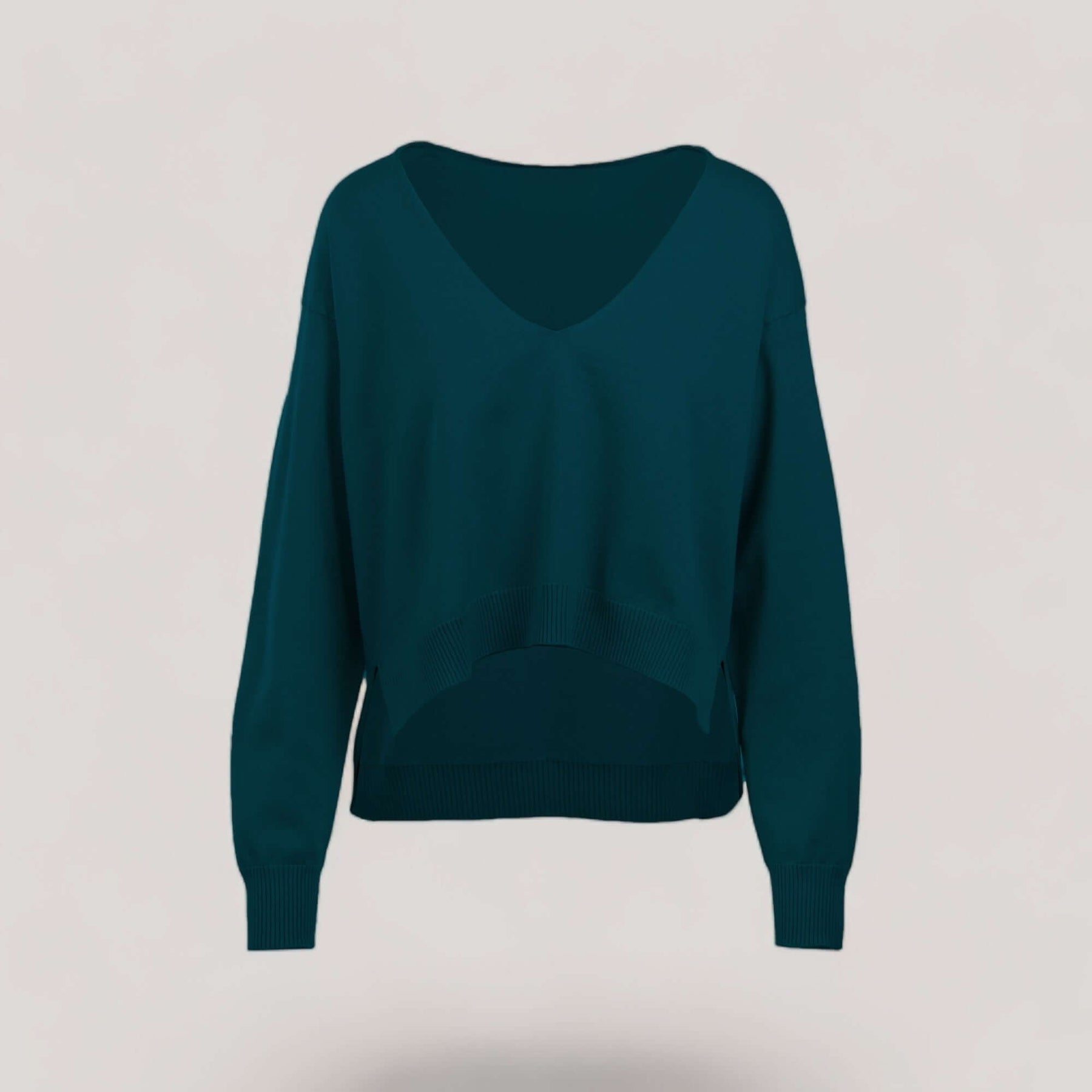 CARMEN | Boxy Cropped V-Neck Sweater | COLOR: PEACOCK |3D Knitted by ALLTRUEIST