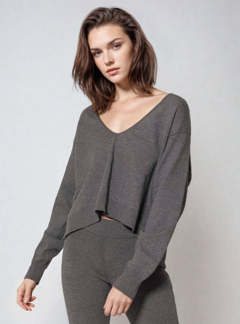 CARMEN | Boxy Cropped V-Neck Sweater | COLOR: SLATE GREY |3D Knitted by ALLTRUEIST