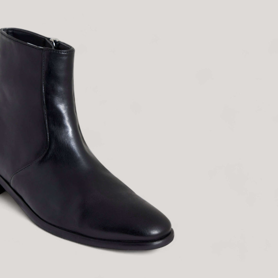 CHARLI Black Vegan Nappa Ankle Boot by AERA, handcrafted in Italy, sustainable vegan shoes inspired by Stella McCartney.