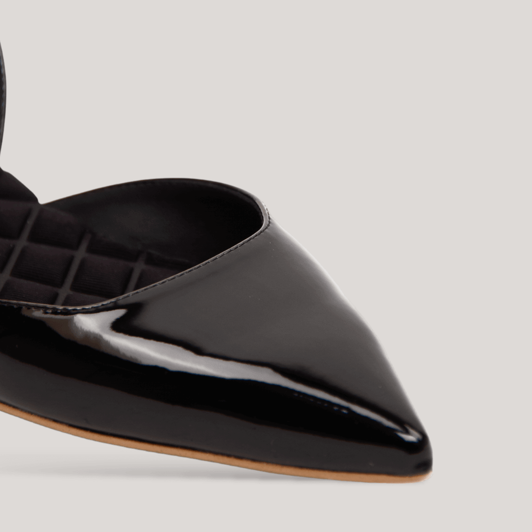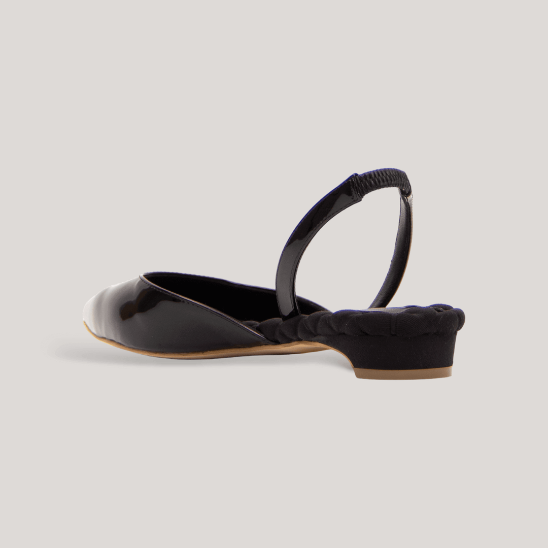JACKIE | Black Vegan Patent Slingback Flats