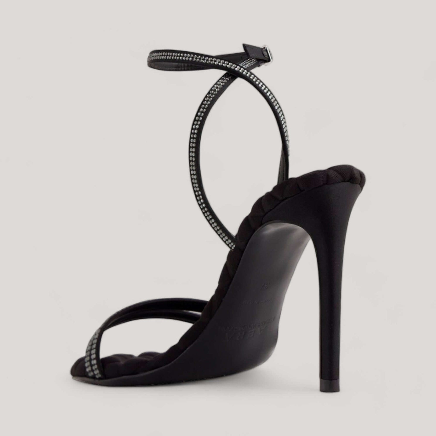 AERA presents the Lucia high-heeled sandal, featuring exquisite craftsmanship with slender straps and adorned with Swarovski crystals. The buckle-fastening ankle strap and signature cushioned insole ensure both style and comfort, making it the perfect option for formal occasions.