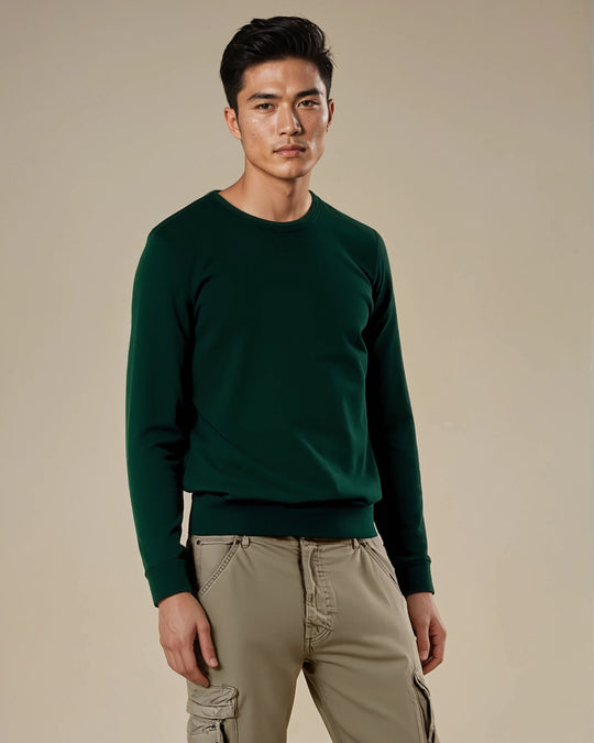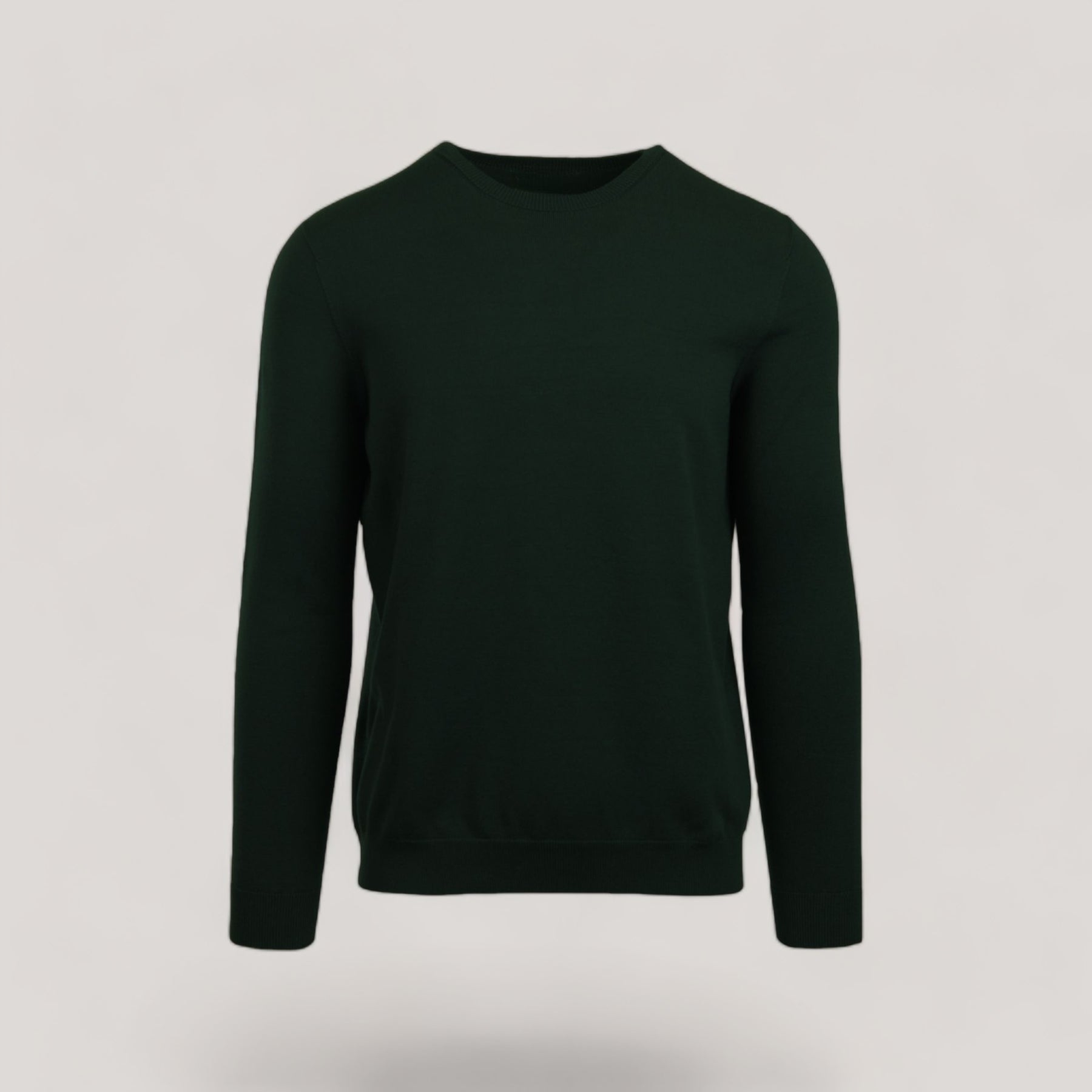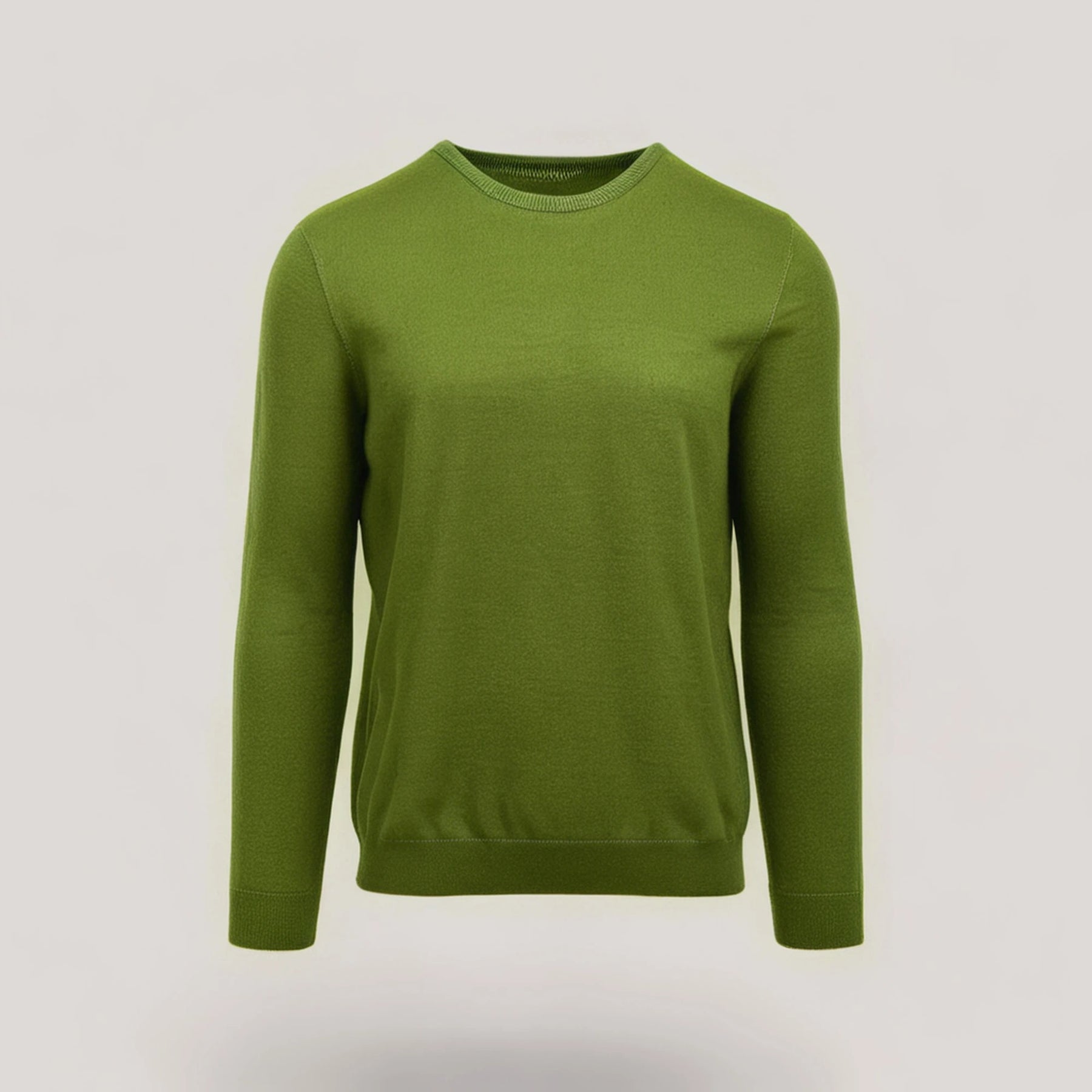 CALEB SHORT | Ecoviscose - Men's Crewneck Sweater in green, sustainable EcoVero Viscose, durable, sophisticated style, on-demand production.