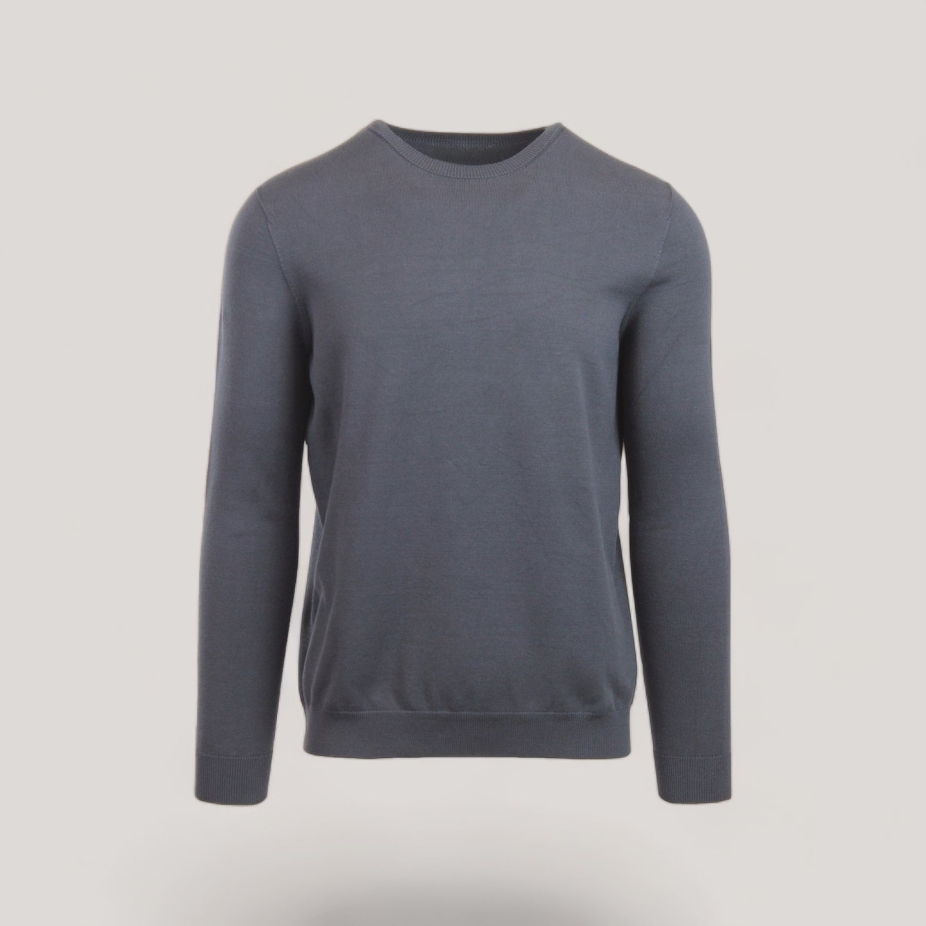 CALEB SHORT | Ecoviscose - Men's Crewneck Sweater in gray, sustainable and durable, crafted for style with shorter torso and sleeves.