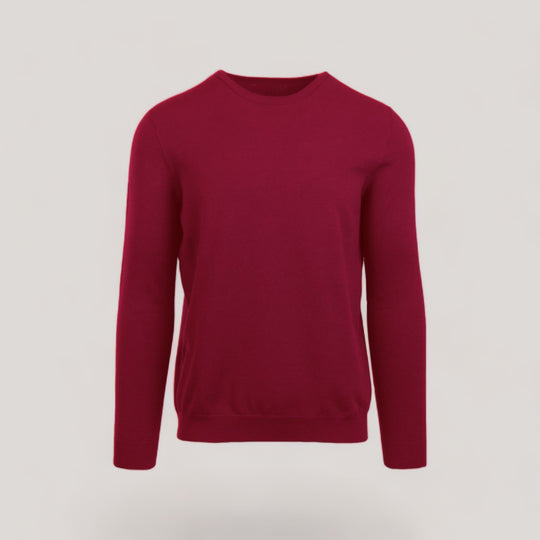 CALEB SHORT | Ecoviscose - Men's Crewneck Sweater in red, sustainable fabric, durable and stylish with shorter torso and sleeves.