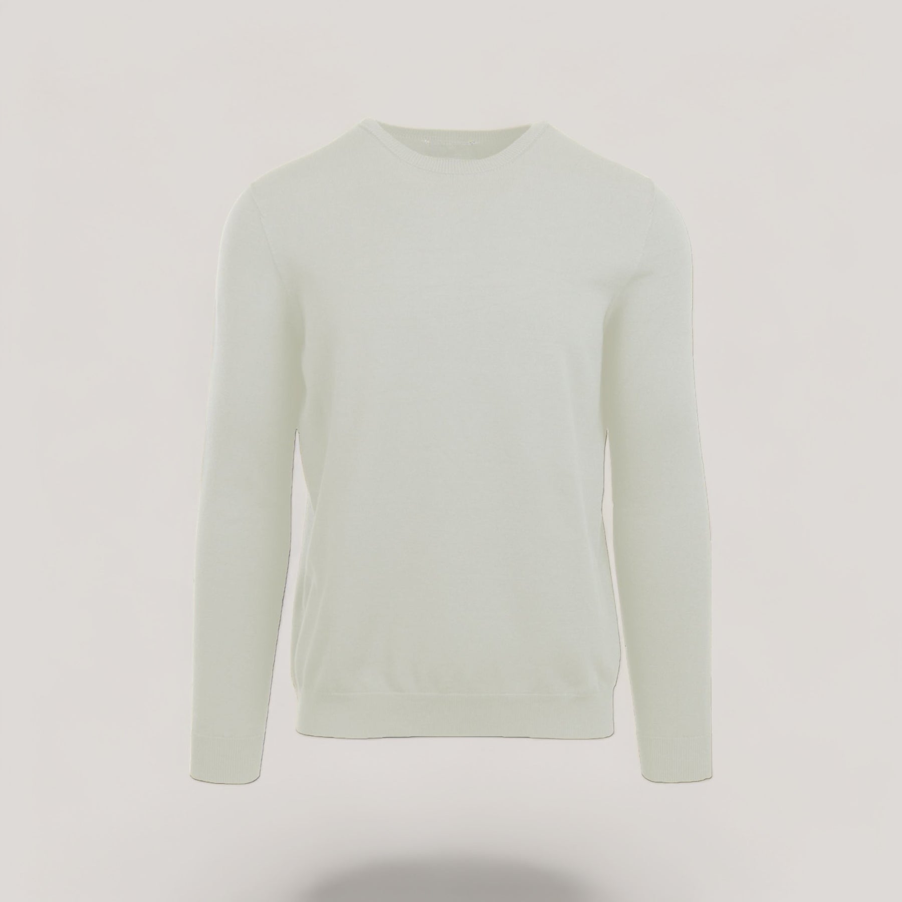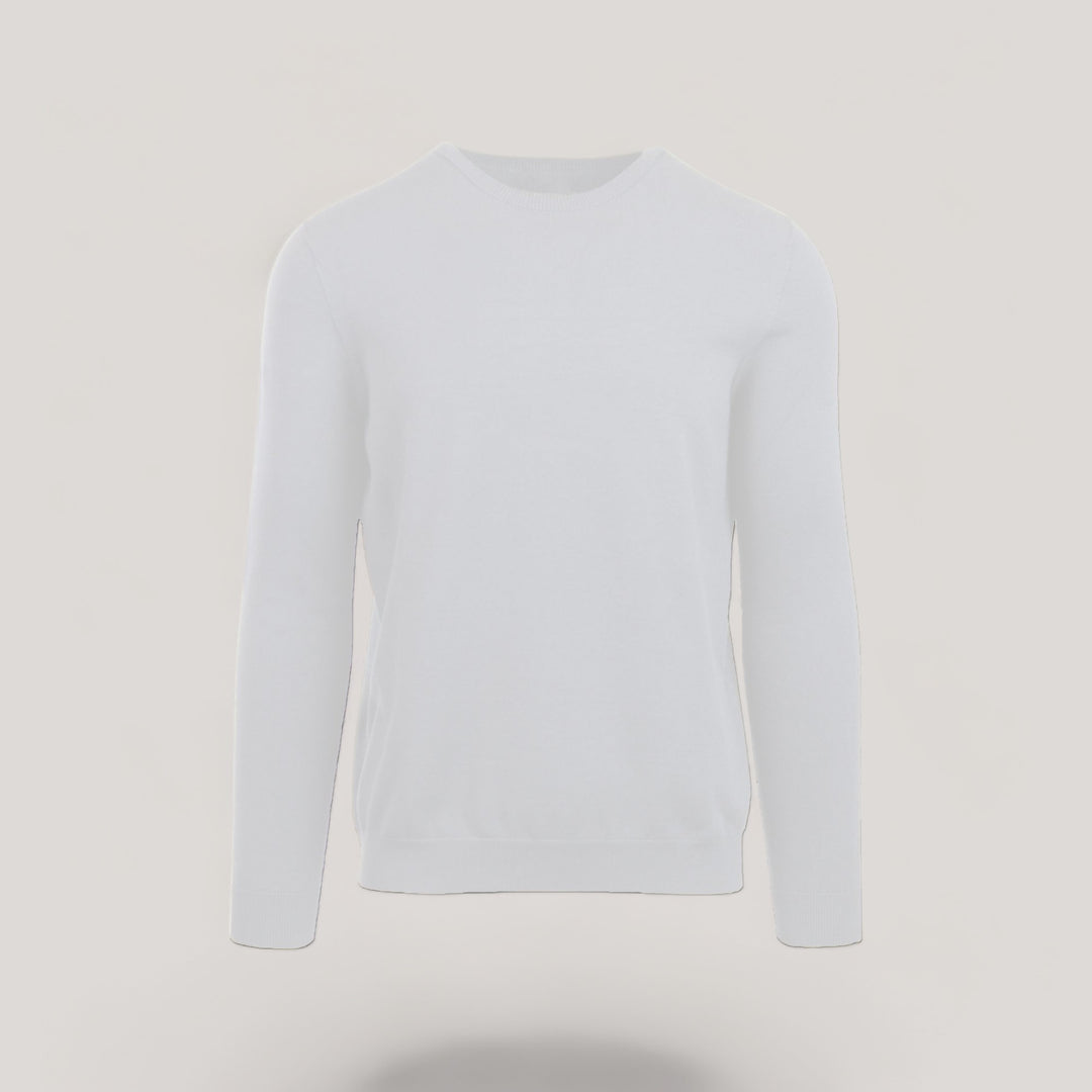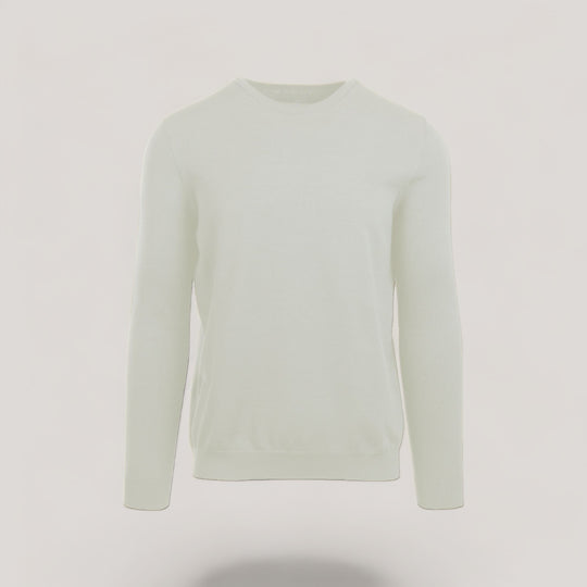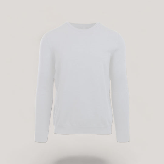 CALEB SHORT | Ecoviscose - Men's Crewneck Sweater in white, made from sustainable EcoVero Viscose, featuring a shorter torso and sleeves.
