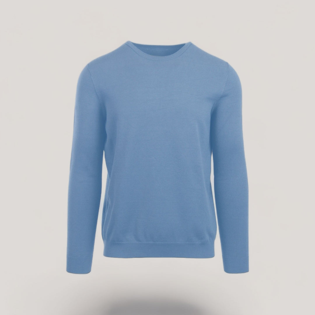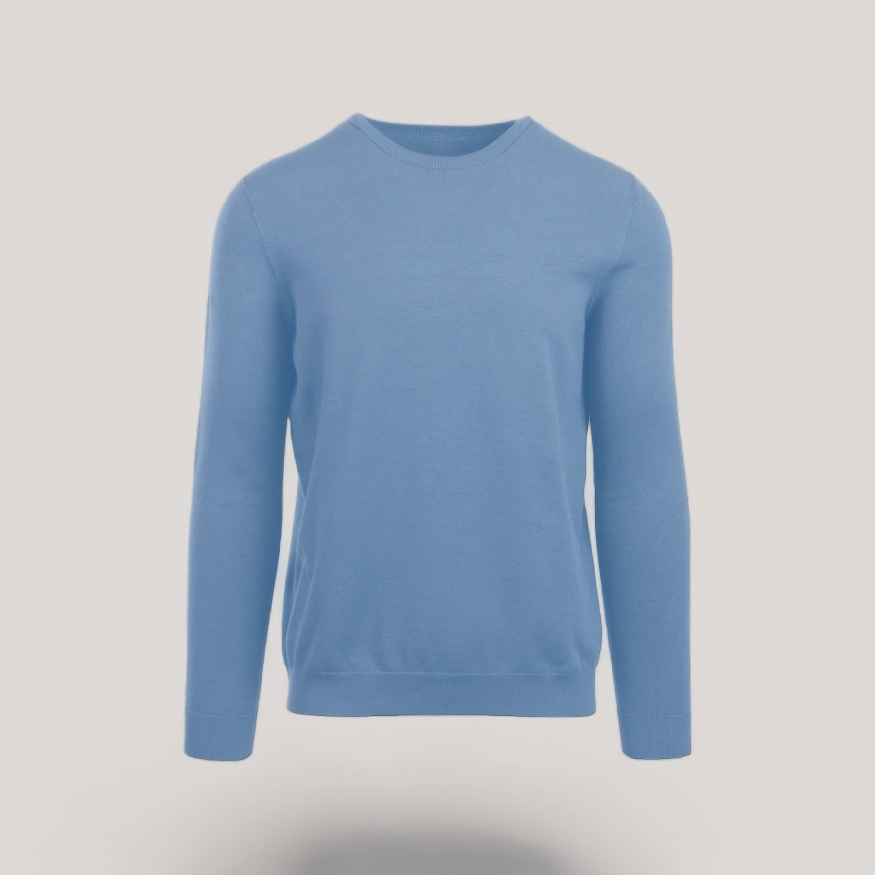 CALEB SHORT | Ecoviscose - Men's Crewneck Sweater in light blue, sustainable and stylish on-demand fashion.