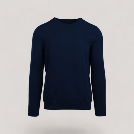 CALEB SHORT | Ecoviscose - Men's Crewneck Sweater in navy blue, sustainability-focused fashion.