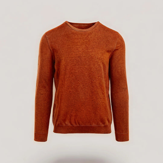 CALEB SHORT | Ecoviscose - Men's Crewneck Sweater in rust, short torso and sleeves, sustainable EcoVero viscose