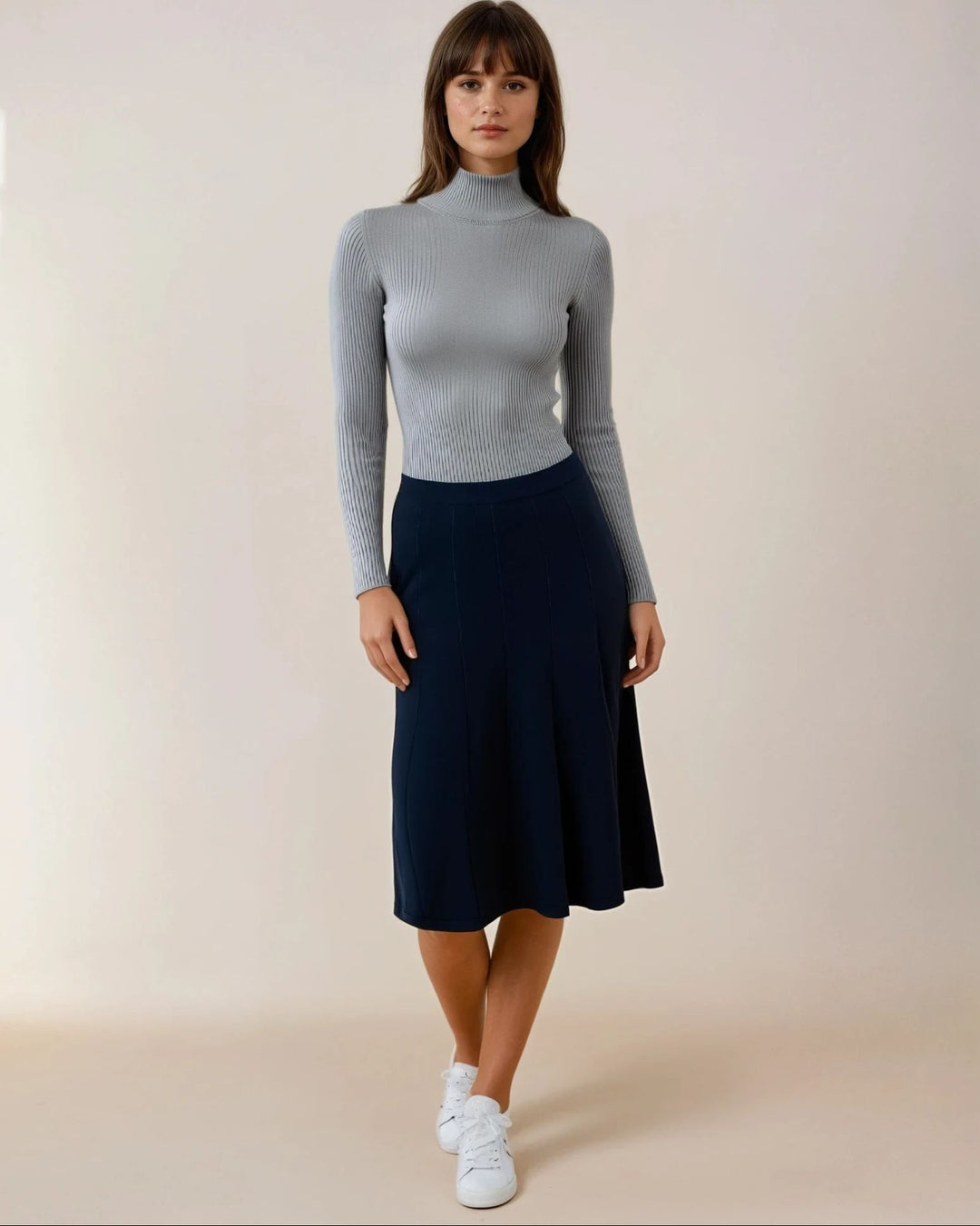 MONICA Midi Flared Skirt in navy, made-to-order with sustainable Lenzing Viscose by Maison Alltrueist, perfect for any occasion.