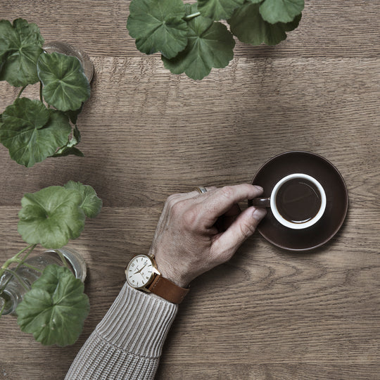 • Strap: Vegetable-tanned Swedish genuine leather from Tärnsjö Tannery, or brushed gold-plated stainless steel bracelet