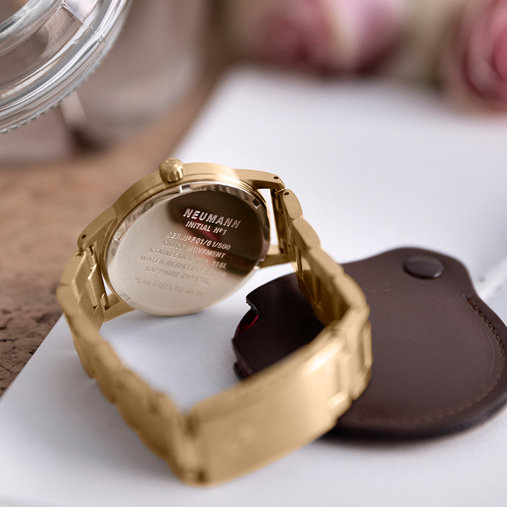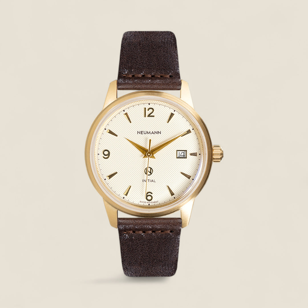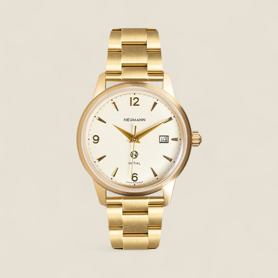 With its brushed gold-plated case and warm off-white dial, this 40 mm edition of the Initial Nº 1 offers a modern take on classic elegance. The dial is framed by a domed sapphire crystal that plays with light and reflection, while the larger case size creates a confident, enduring silhouette. This is a timepiece that moves effortlessly between occasions, designed in Sweden and assembled in Germany for lasting precision.