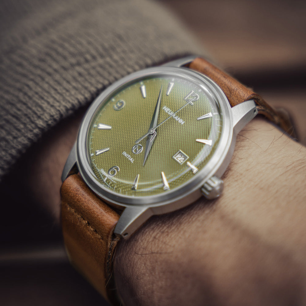 Initiale N° 1 | ACIER - VERT | Montre 40 mm
