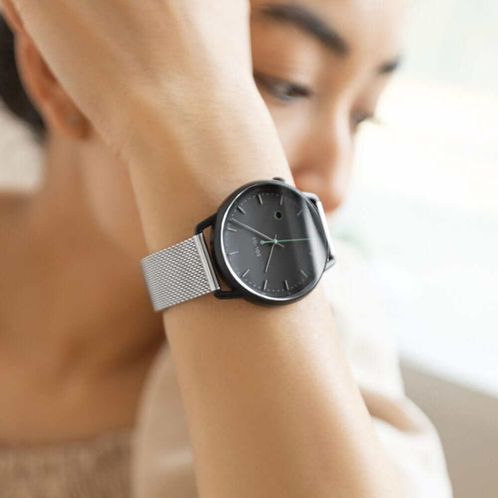 Les montres Solios sont alimentées par une technologie solaire innovante, vous permettant de recharger votre montre lorsque vous vous déplacez tout au long de la journée. Dites adieu au gaspillage des piles à usage unique et bonjour au style durable.