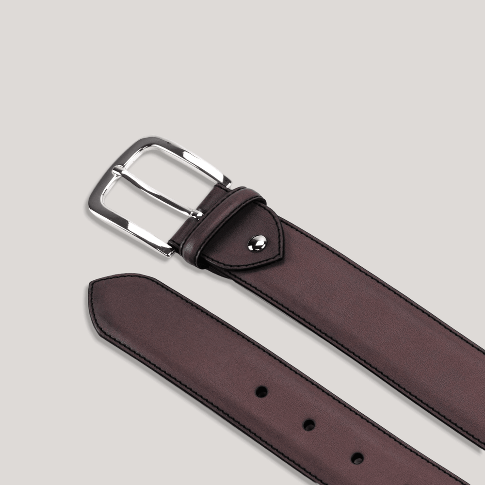 Introducing LUMEN, an elegant vegan belt crafted with over 100 hand-finished steps by skilled artisans in Spain. Its timeless and luxurious burgundy Nappa leather paired with a shimmering silver-tone buckle is guaranteed to elevate any look. Representing enlightenment and conscious choices, LUMEN is a must-have addition to any modern fashionista's wardrobe.