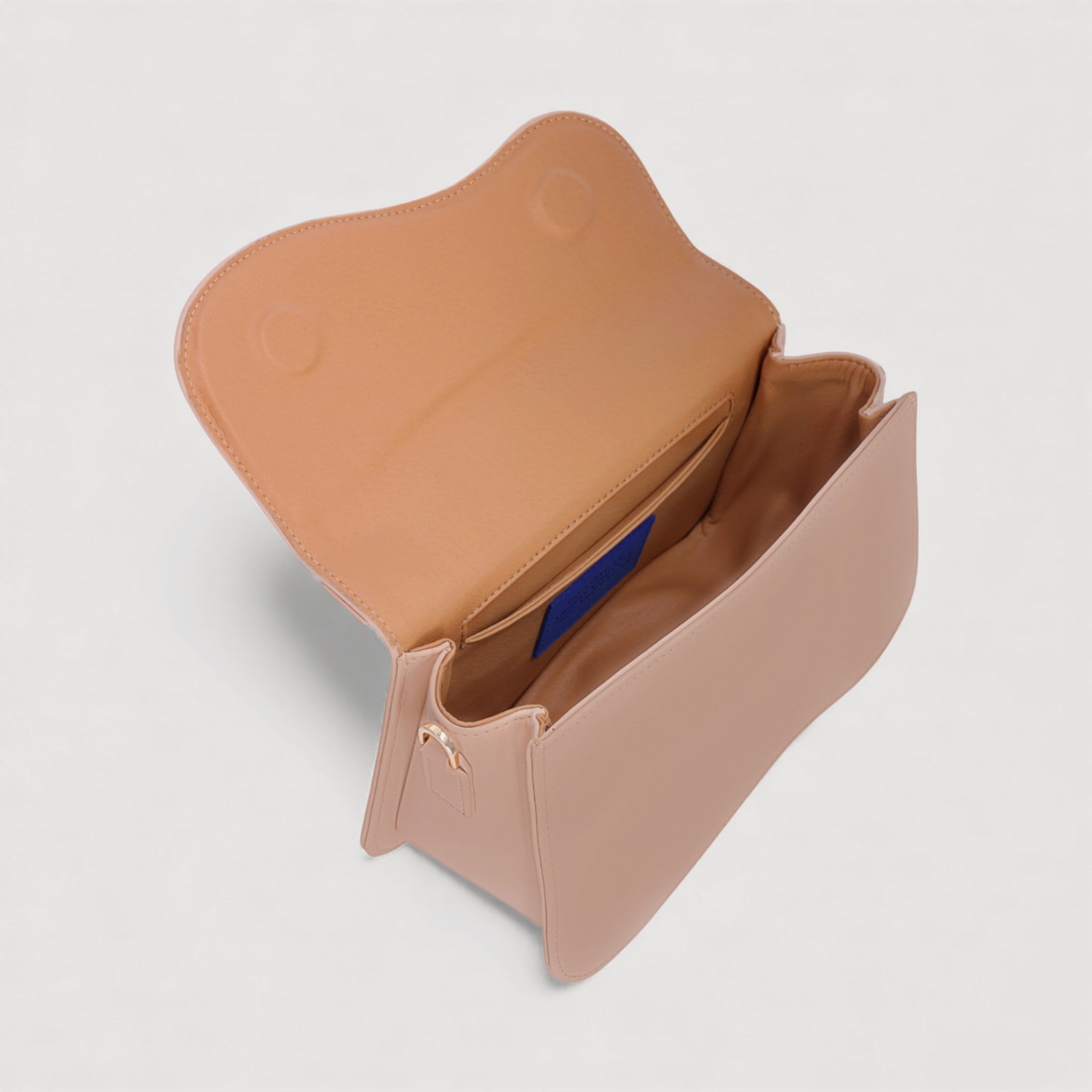 Inside view of Nami | Mini Crossbody Bag | Beige by ALEXANDRA K. VEGAN HANDBAGS at ALLTRUEIST, showcasing magnetic closure and compartments.