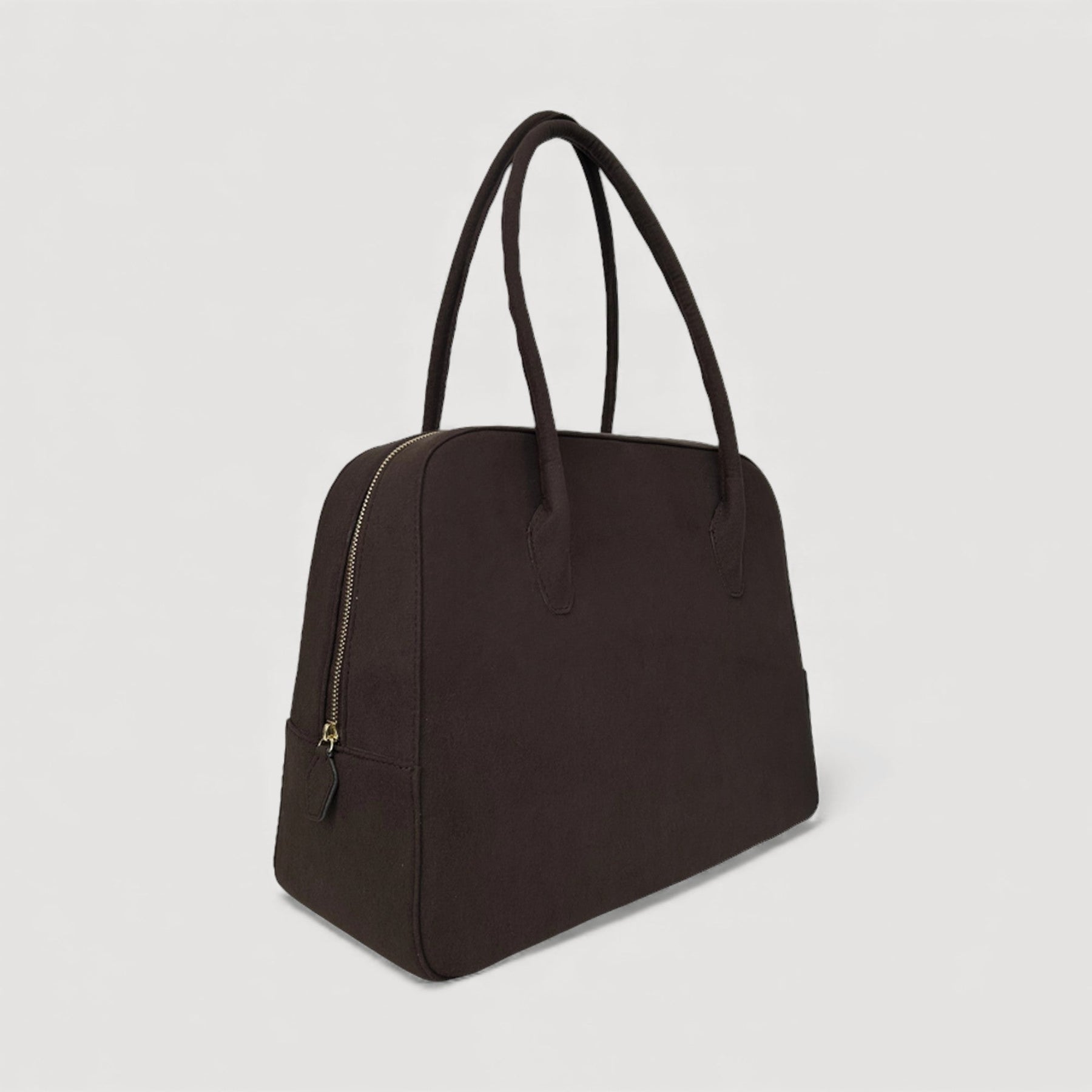 The Nua Maxi Tote in Brown Suede is an essential accessory for those who demand both substance and sophistication. Thoughtfully engineered with ample space for laptops, documents, and daily items, it maintains a restrained elegance that transcends conventional office wear.